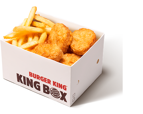 Up your Value Meal game with our new Chicken Nuggets King Box! For only $3.90 get four crispy chicken nuggets with our golden hot salted fries. Perfect for on the go!
