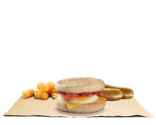 Dine like The King with a Bacon & Egg Muffin, two delicious breakfast sausages and hash bites. Perfect for a lazy weekend breakfast.
